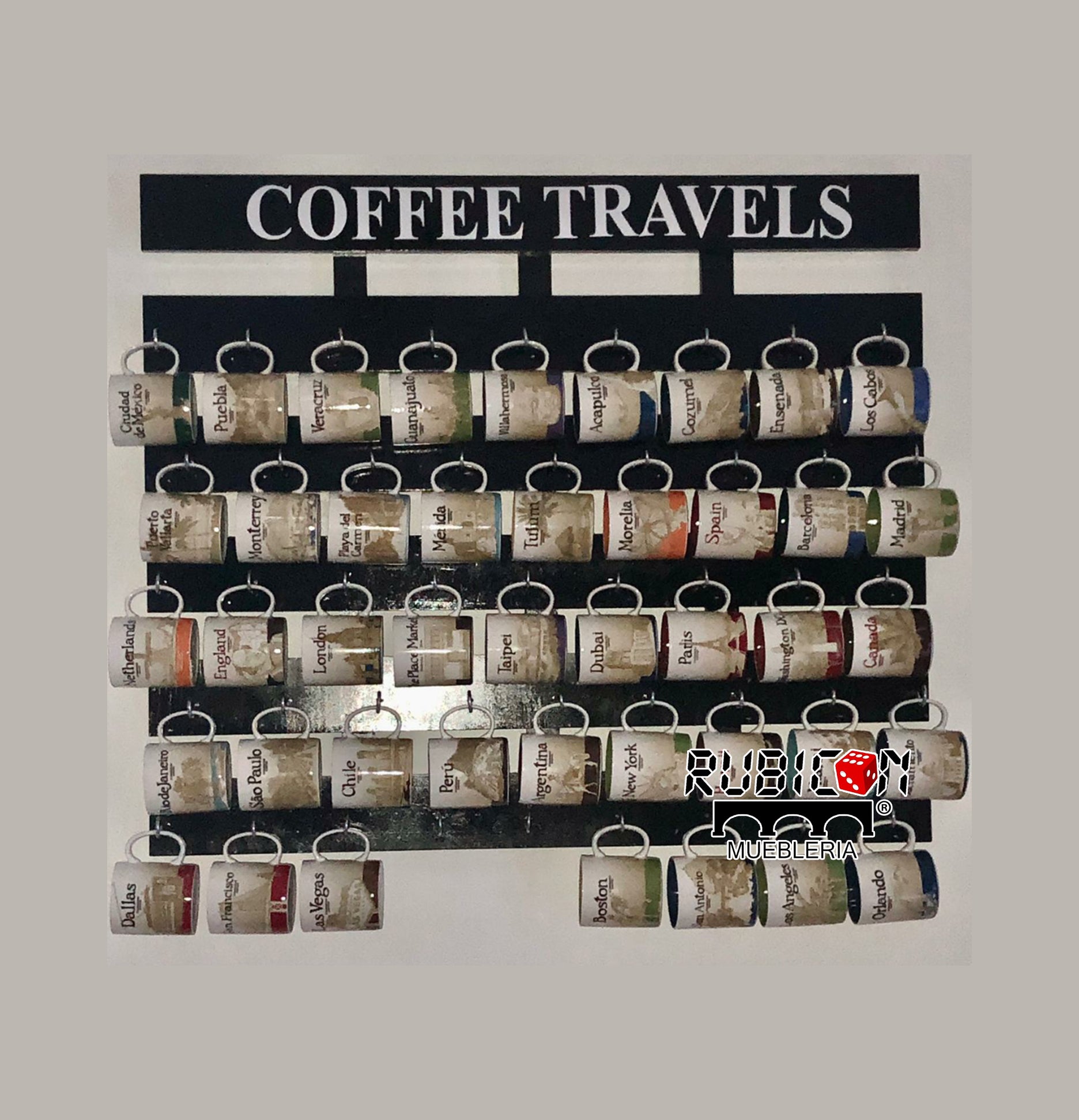 ¿Quieres mantener tus tazas de café organizadas y al alcance en la cocina? Nuestro porta tazas de pared Coffee Travels es la solución perfecta. Con su diseño elegante y funcional, podrás exhibir tus tazas con estilo. Ahorra espacio y añade un toque de encanto con este accesorio imprescindible para amantes del café. ¡Consigue el tuyo hoy y disfruta de tus tazas favoritas siempre al alcance!